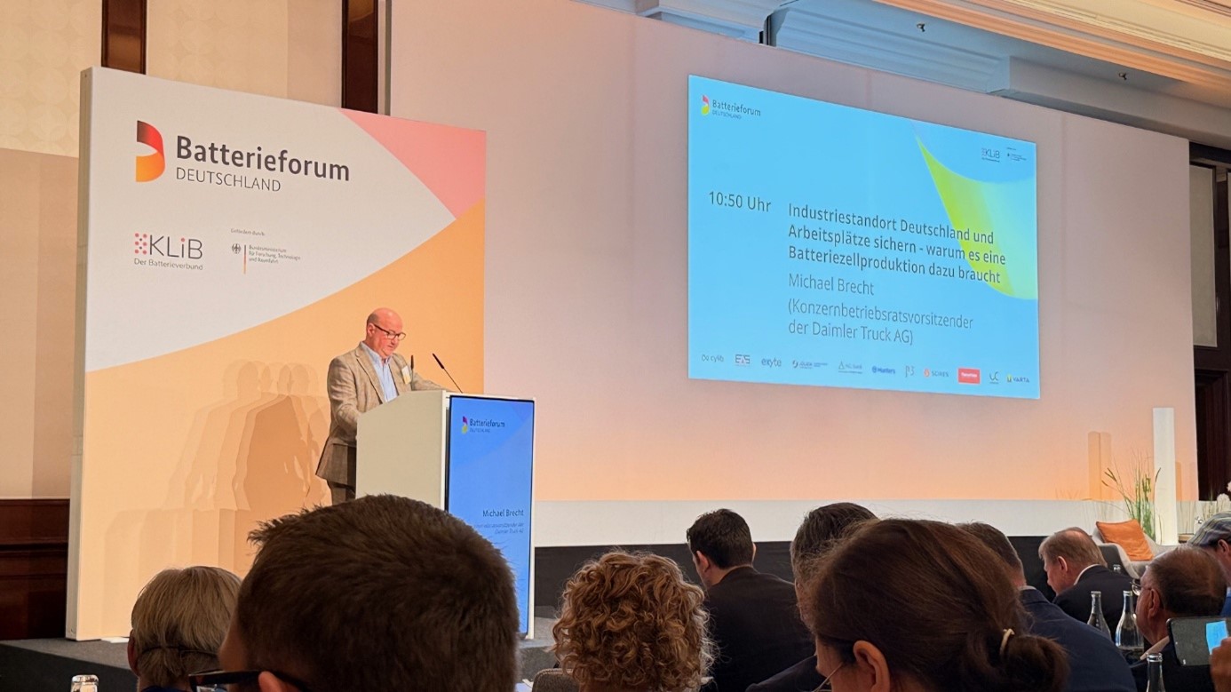 Foto: Michael Brecht bei seinem Vortrag zum Thema: „Industriestandort Deutschland und Arbeitsplätze sichern – warum es eine Batteriezellproduktion dazu braucht“.